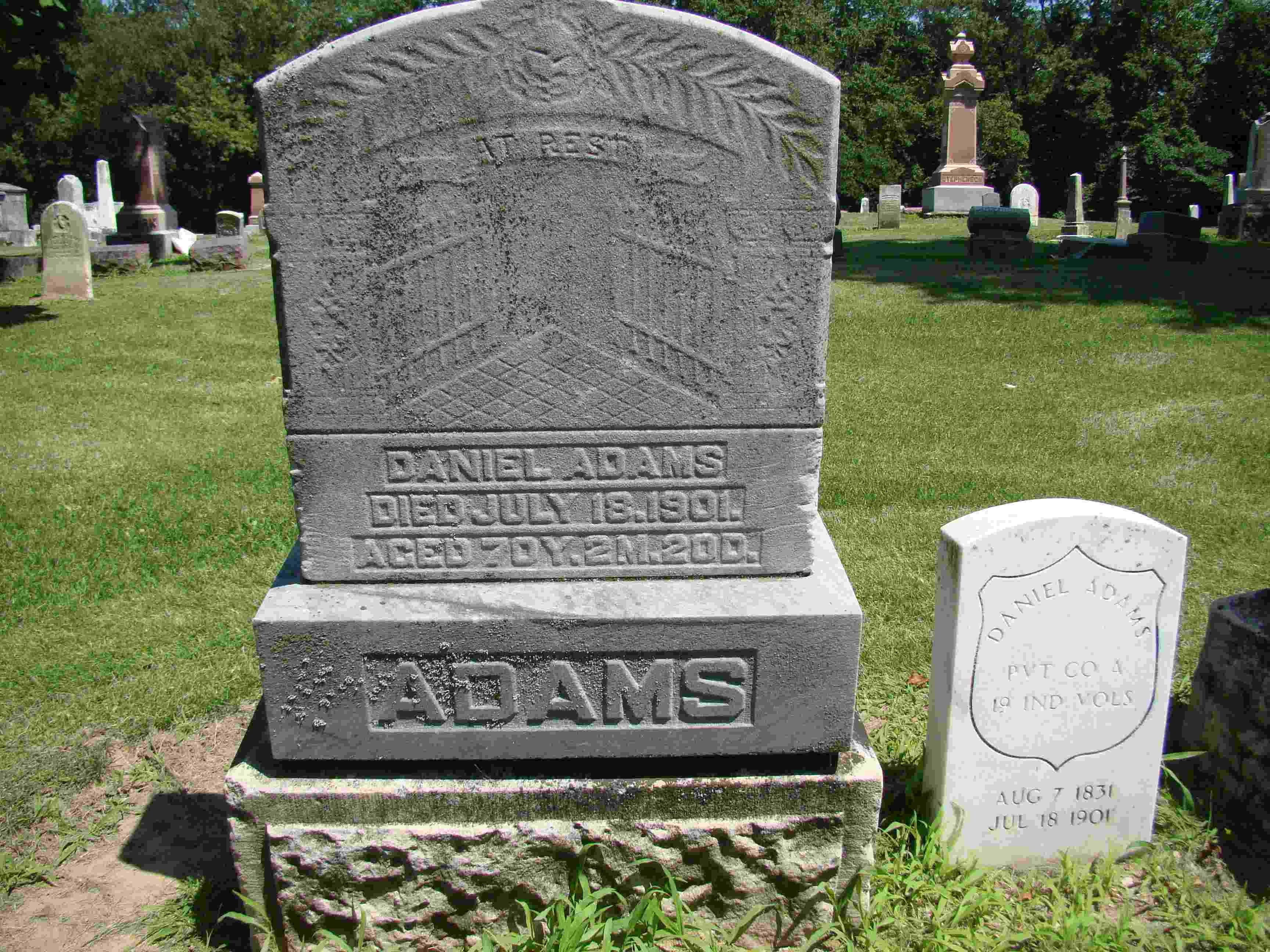 Private Daniel Adams was wounded on September 14th, 1862 at the Battle of South Mountain and also on July 1st, 1863 at the Battle of Gettysburg. He was later discharged because of those wounds in November of 1863.